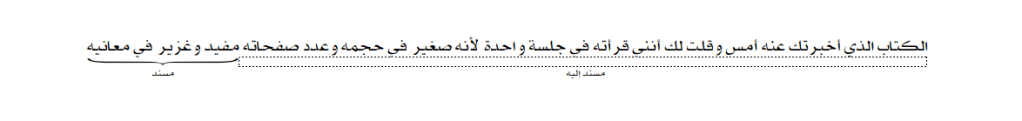 لنعد لموضوعنا، أقول أننا نقبل أن تكون الجمل في اللغة العربية طويلة نسبيا؛لكن هذا لا يعني أنه لا يمكن أن تكون الجمل طويلة في اللغات الأخرى؛ فمن خواص اللغة ولا أحدد هنا لغة بذاتها وإنما اللغة عامة، من خواصها التكرار؛ فالجملة يمكن أن تطول وتطول بإضافة المزيد من النعوت والمعطوفات والجمل الموصولة لكن تركيب الجملة من حيث الإسناد يبقى كما هو؛ مما يؤدي إلى طول الجملة وهذا الطول قد يسبب بعد المبتدأ عن الخبر أو لنقل المسند عن المسند إليه؛ خذ هذا المثال: جملة الكتاب مفيد مكونة من كلمتين فقط: مبتدأ وخبر. في هذه الجملة أنا أتكلم عن الكتاب هو محور الحديث هنا، وحتى تكون جملتي مفيدة أحتاج إلى أن أسند إلى هذه الكلمة كلمة أخرى تبين ما به هذا الكتاب فأنا لا أستطيع أن أقول الكتاب وأسكت هكذا حتى يكون لكلامي معنى؛ في هذه الحال أنا أسندت إلى كلمة الكتاب كلمة مفيد فهذه هي المسند لتكون الجملة: الكتاب مفيد.